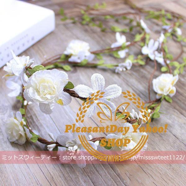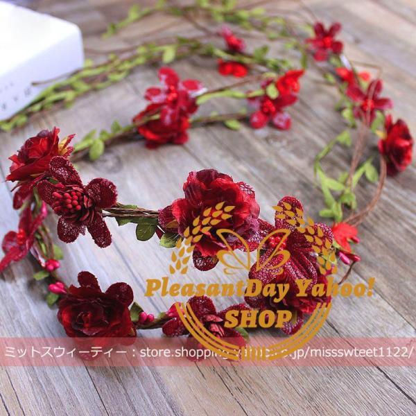 花冠 ウェディング ホワイト レッド ピンク ヘッドドレス 花かんむり 造花 髪飾り 花輪 ブライダル リゾート 旅行 花嫁 二次会 結婚式 森ガール 前撮り 後撮り